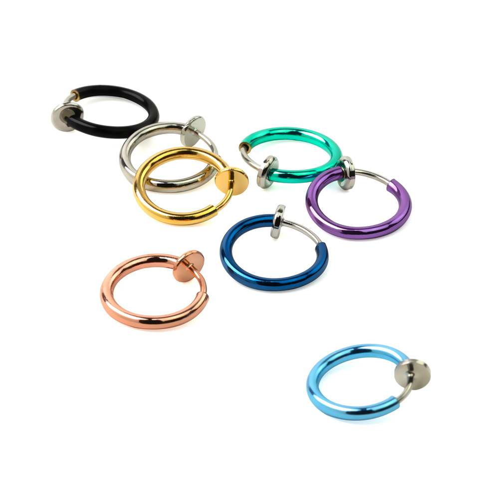 You can wear them in typical places, like in the ear. But you can also go further and wear them as a nose, lip, and even as a belly button piercing. This ring has a small spring on the inside that you push back to open it. When you put the ring where you want, the spring makes it sit snuggly in place.