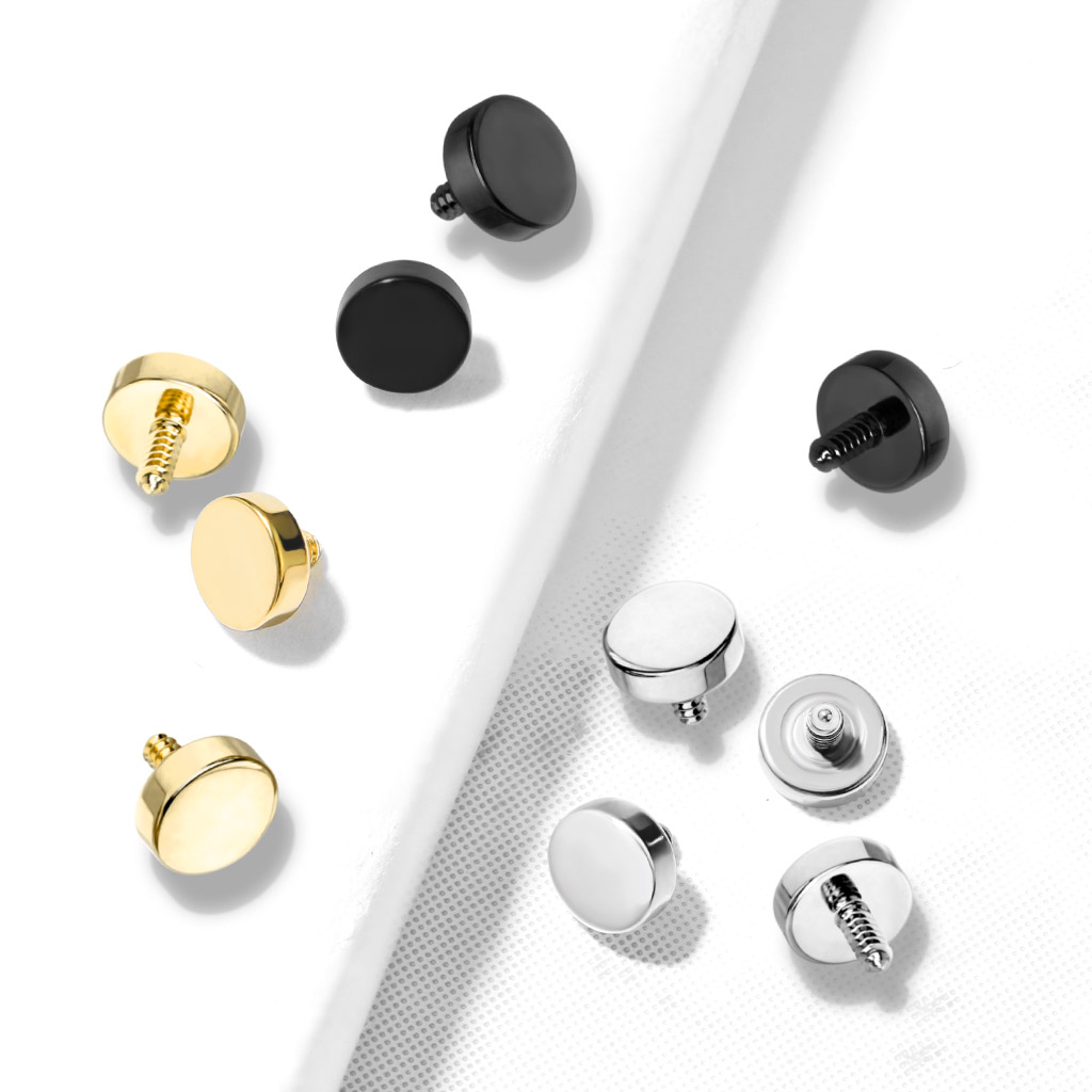 This small flat disc is intended for use in an internally threaded bar. The ball is threaded down into the bar, just like a regular ball is usually threaded. It's suitable for jewelry with a gauge or thickness of 16g (1.2 mm).