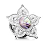 But the lotus flower's center is what makes it so special, as it comes with a marvelous mother of pearl gemstone. Mother of pearl is a natural material produced by certain mollusks that cover their shell with it. As we’re talking about organic material, it is important to remember there are no two identical pieces.
