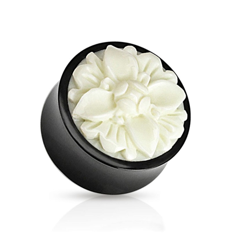 Plugas iš rago ir kaulo su rankų darbo gėle