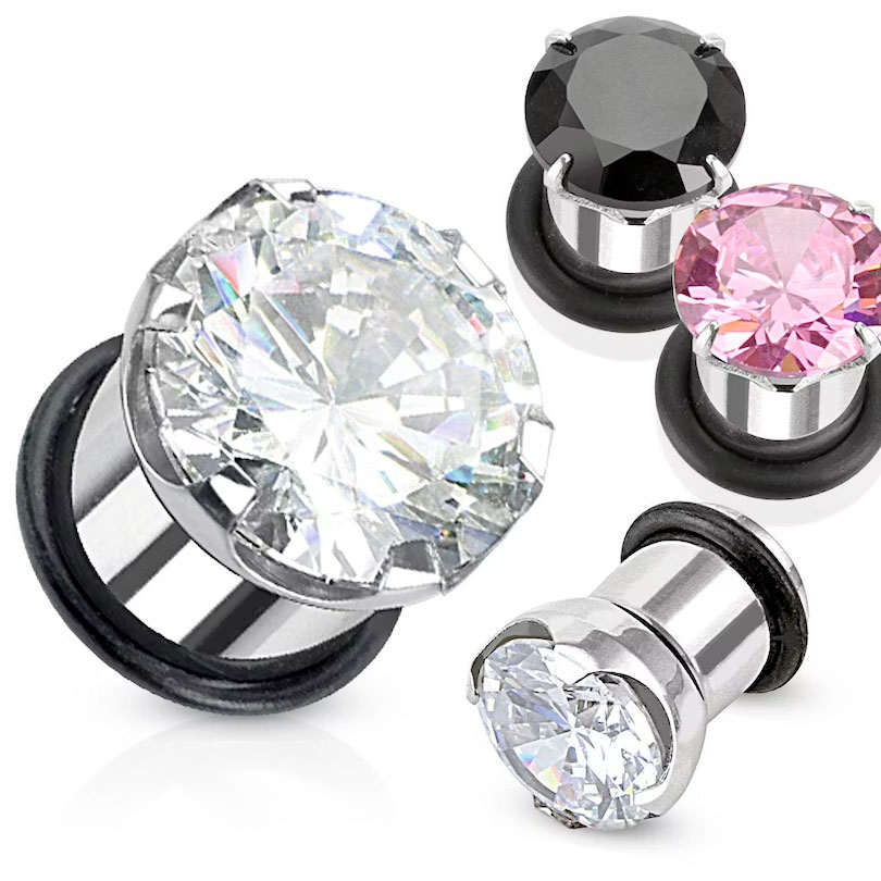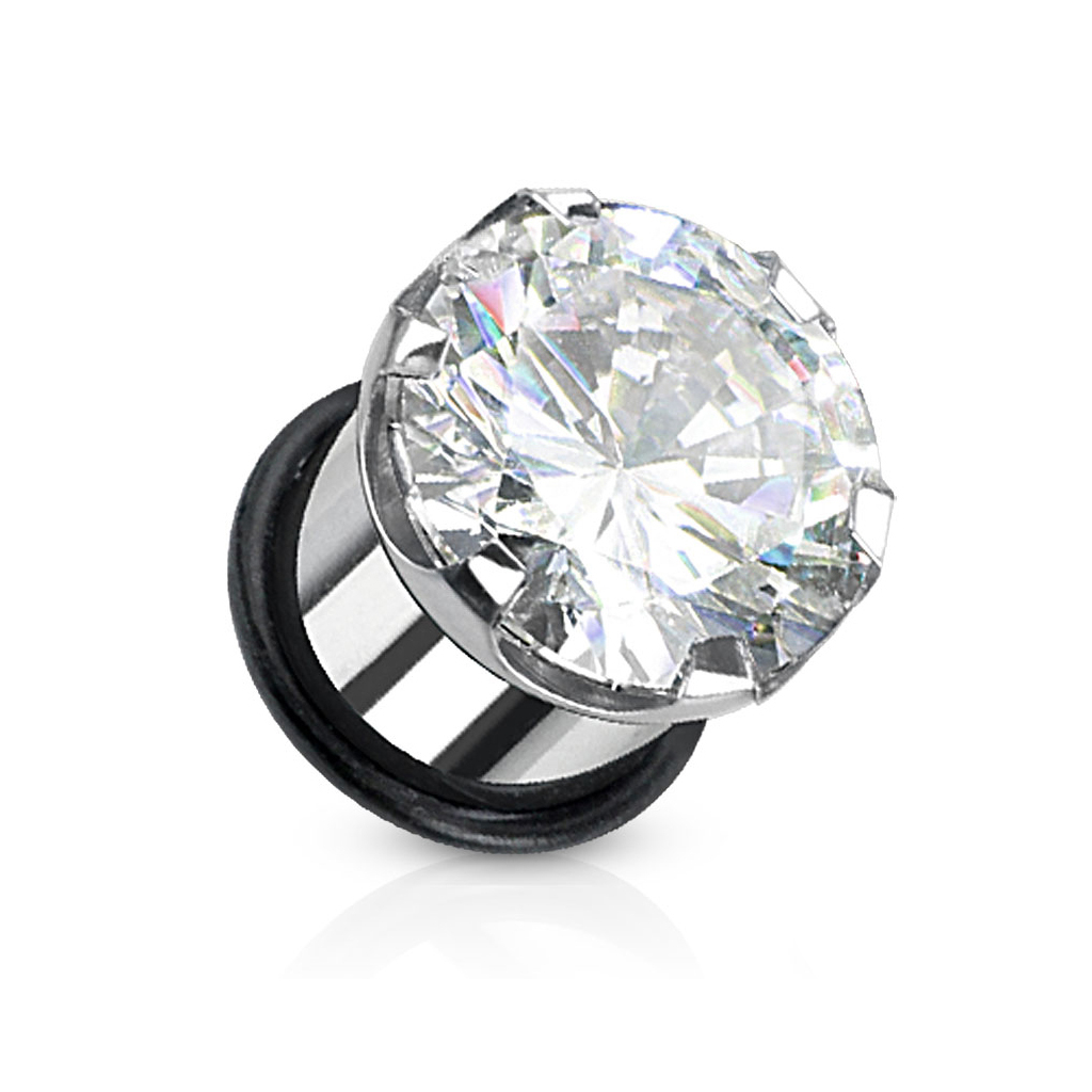 Do you want classic jewelry with some bling-bling for your gauge? We introduce the perfect plug for you. It's a single flared plug, which means that it has only one side to show, in this case, the one with the stone. The back comes with an o-ring that allows insertion and removal.