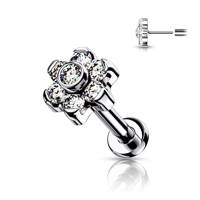 Pavadinimas: Įstumiamas labret auskaras su gėlyte iš kristalų