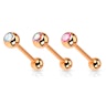 Do you like jewelry that adds glamour to your tongue piercing? Discover this sexy tongue barbell that you can't miss. It's a sensational barbell that is entirely gold-plated with rose gold. It's a pink shade of gold that makes the jewelry look incredibly beautiful and feminine.