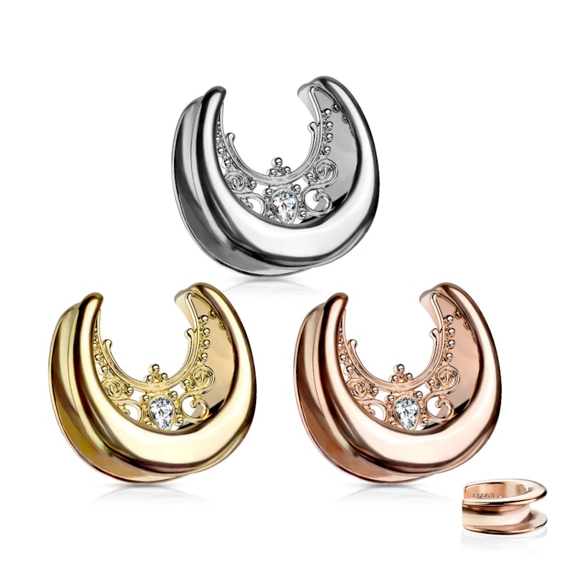 Auskaras prieinamas įvairių dydžių ir spalvų. Įsidėmėk, kad jei nori nešioti šį auskarą, privalai išplatinti ausis iki 10mm. arba daugiau. Tunelio kraštai yra nukreipti į apačia, todėl auskaras tvirtai laikysis tunelio vietoje.