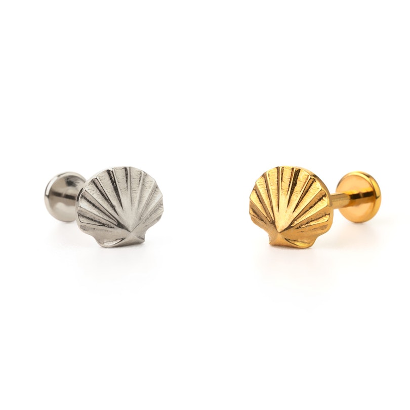 If you're hitting the beach or just dreaming of sandy shores, this cute shell labret is the perfect accessory to complete your summer look.