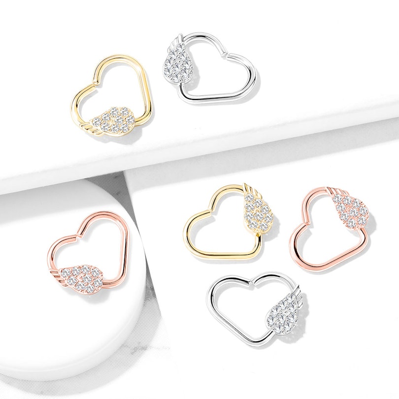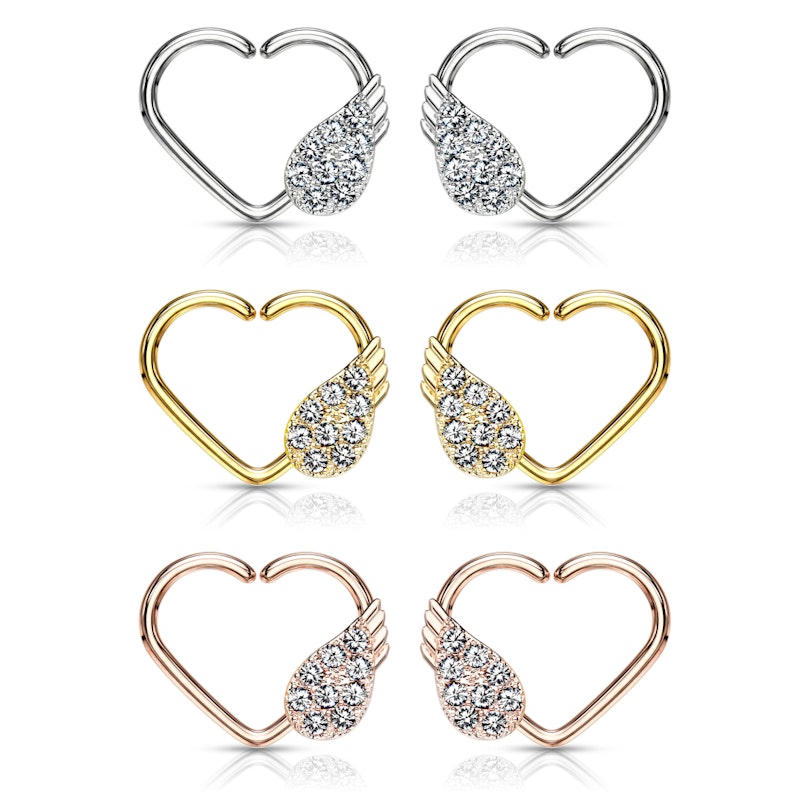 Pavadinimas: Širdelės formos auskaras į ausis su sparnu
