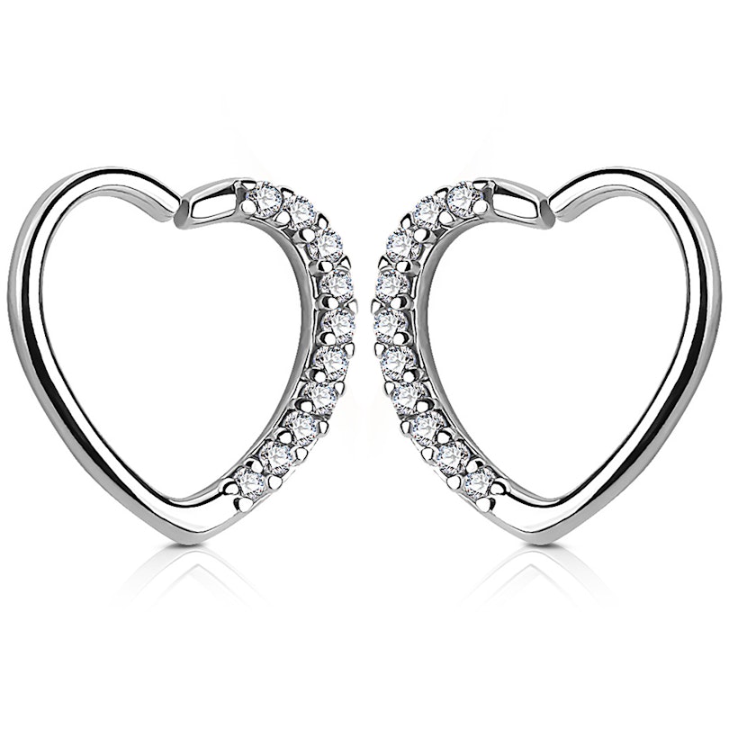 Širdies formos auskaras į ausį su kraštu iš kristalų