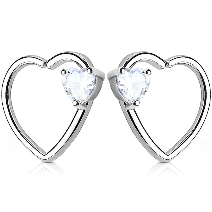Širdies formos auskaras į ausį su širdies formos kristalu