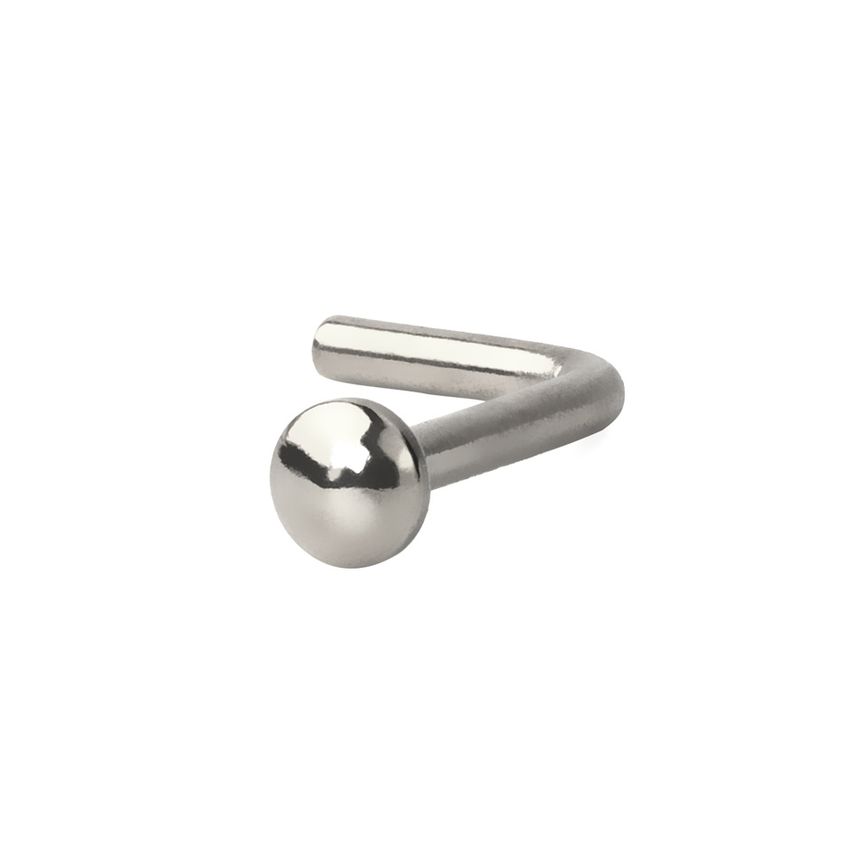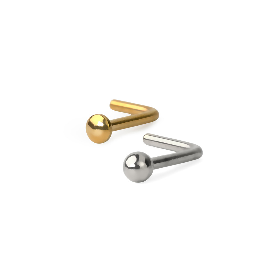 This nose stud is L-shaped, with a straight angle that allows fitment like a nose screw. It's easy to put in and safer than a nose stud.