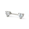 In the featured image, you will see very delicate nipple jewelry. These straight barbells are made of surgical steel, featuring sparkling double prong-set cubic zirconias. You can have these stones in your choice of color. The color selection applies to both the barbell and the heart-shaped stones. You can, for example, choose a rose or yellow gold barbell with blue or red hearts. You are free to combine these options as you like.