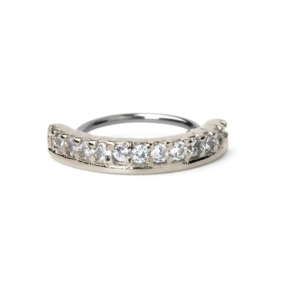 Pavadinimas: Suktas žiedinis auskaras su pusapskritimiu ir akmenukais