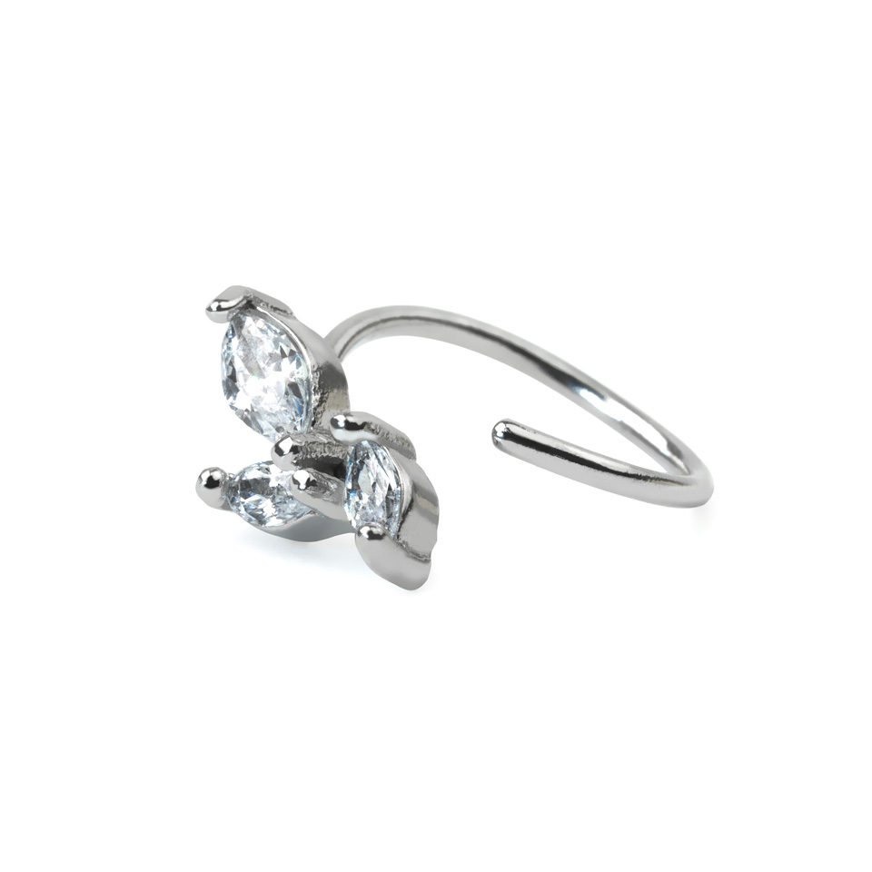 Žiedinis auskaras su trimis ovaliais kristalais