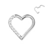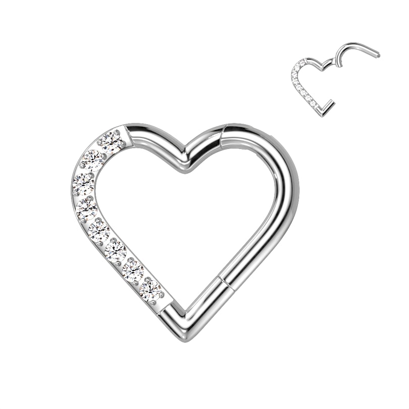 This cute little ring is made of titanium, which is the safest material you can choose for your piercings. The beautiful heart shape of the ring is eye-catching on its own. The piece also features CZ stone paving on one side, adding the bling factor.