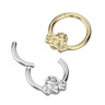 Hinged rings are a convenient jewelry choice for septum and ear piercings, like tragus, anti-tragus, and rook piercings, where the space is minimal. The hinged ring doesn't have any detachable parts, and the mechanism is effortless to use. Pull the small hinged segment open, insert the ring in the piercing, and close it by clicking the segment back in place.