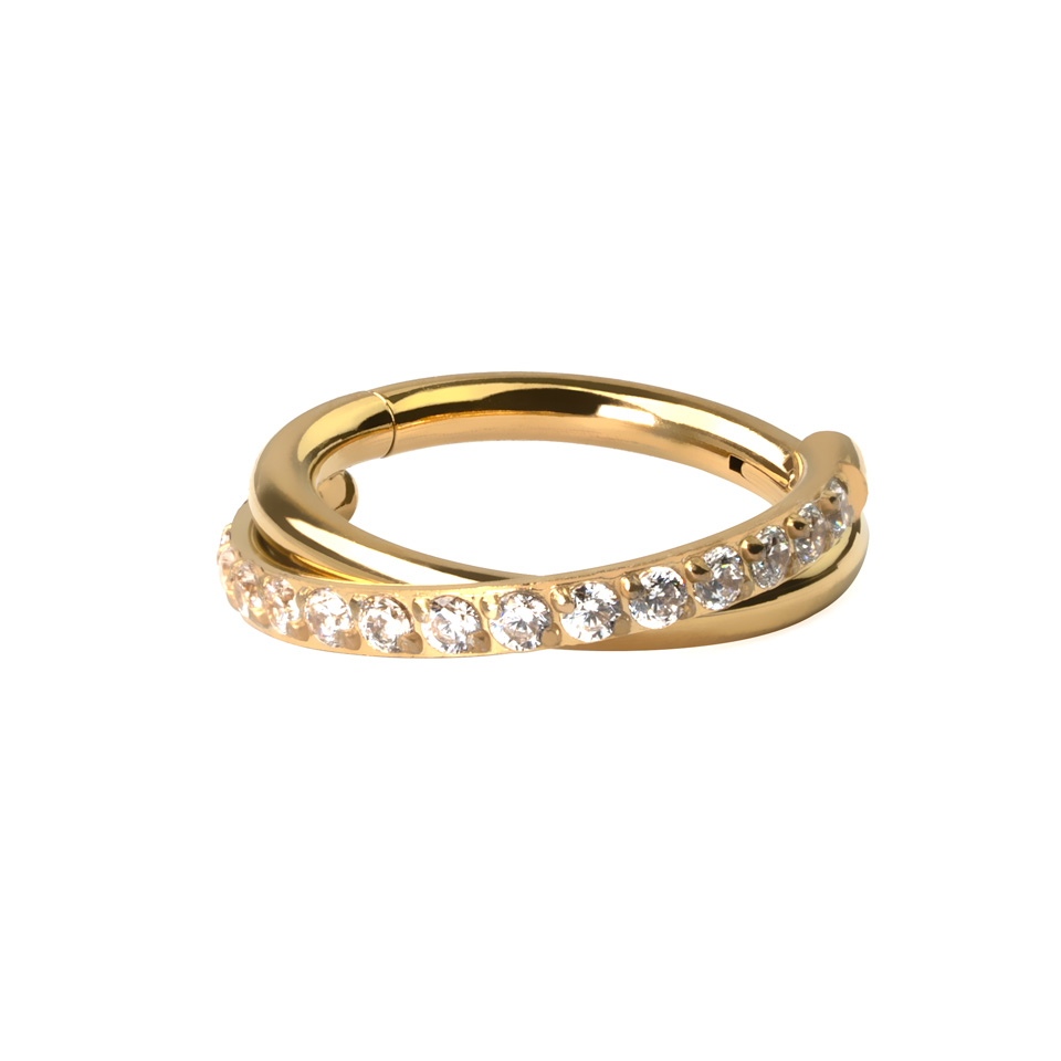 The ring's paved crossover design is perfect for adding elegant sparkle to your ear piercings, for example, helix, daith, rook, and even ear lobes.