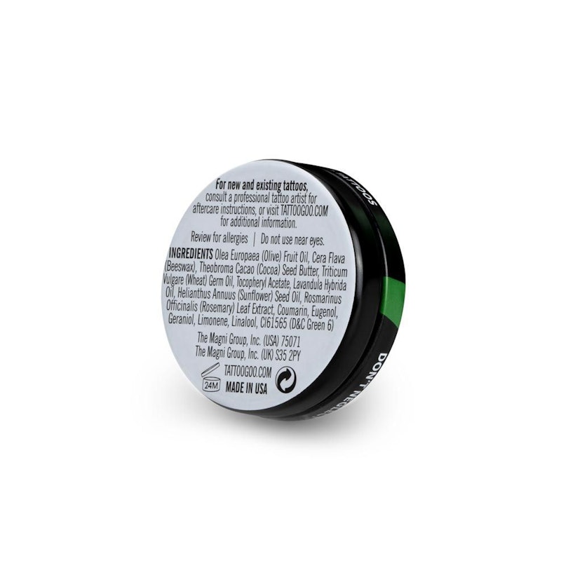 Pasirūpink savo tatuiruote su šiuo Tattoo Goo tepalu. Tepalas randasi mažame metaliniame konteineri. Kremas yra žalias ir kvepia levanda.