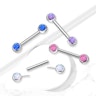 The entire piece of jewelry is made of titanium. The barbell has a length of 9/16" (14 mm), so it should fit most nipples. The balls are 1/4" (6 mm) big and flat at the back, so that they lie flat, depending on where in the nipple your piercing is. The opals in the balls are not real, but imitation opals. They're bezel set in the sphere, so no glue is used to attach them. You can choose from different colors.