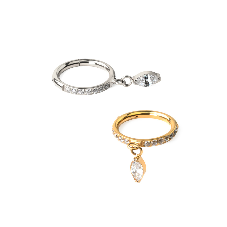 Titanium hinged ring with forward facing stones and marquise cut charm