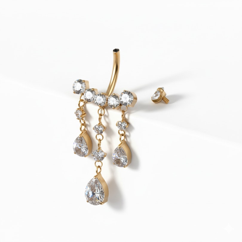 Titano bambos barbell su kabančiais akmenukais sukurtas traukti akį. Akmenukai primna plonyčius lašelius ir juda kartu su jums, suteikdami papuošalui akivaizdaus žavesio. Detalus, bet neperkrautas, drąsus, bet išlaikantis balansą papuošalas. Galima įsigyti aukso ir sidabro spalvų. Šis modelis skirtas tiems, kurie mėgsta labiau pasipuošti.
