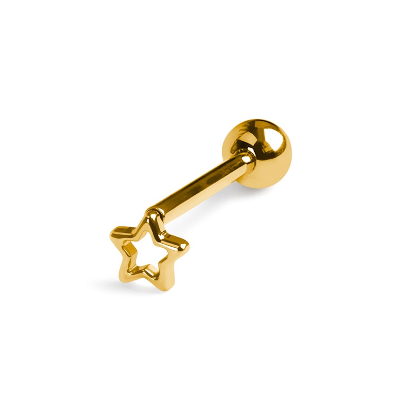 Šis titano barbell į liežuvį su žvaigždute yra hipoalerginis, tad tinka tiems, kurių oda jautri. Jis turi vidinį sriegį, o tai reiškia, kad jums reikia įterpti glotnų kotelį pro jūsų auskaro vėrimo vietą ir užsukti.