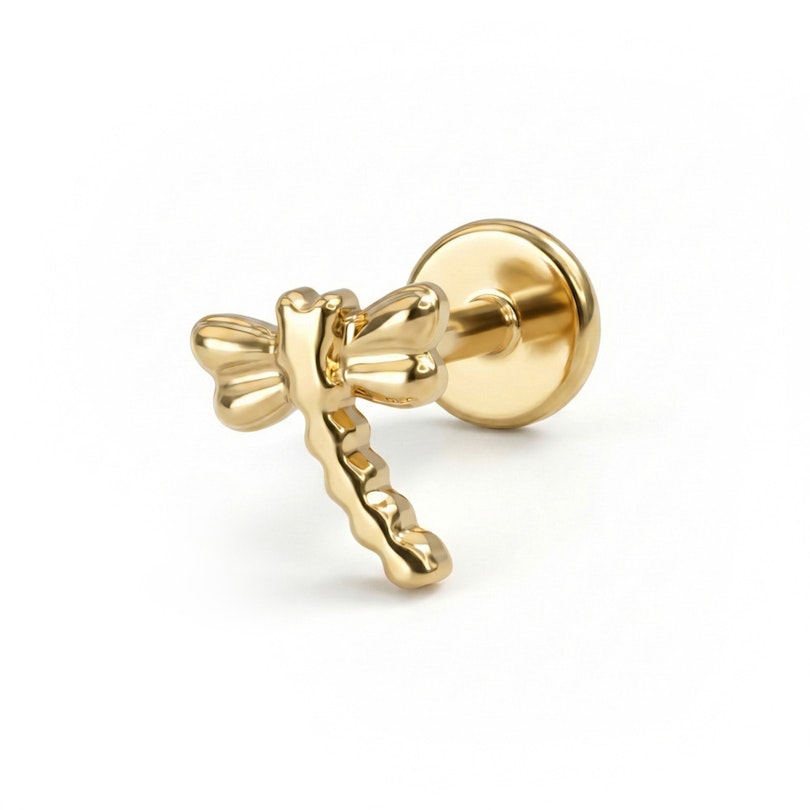 This cute labret features a dragonfly design. It is crafted from titanium, ensuring comfortable wear even for sensitive skin. The delicate size (the dragonfly is a dainty 5.8 mm) means that this piece is suitable for a range of ear piercings. The labret features a push-in lock, which makes it super simple to secure in your piercing.