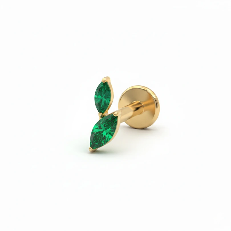 Šis titano labret su dviem markizės briaunų akutėmis yra įrodymas, kad daugiau yra mažiau. Dvi pailgos briaunos išdėstytos kaip glotnūs lapai ar sparnai ir suteikia jūsų auskarų deriniui tinkamą akcentą.
