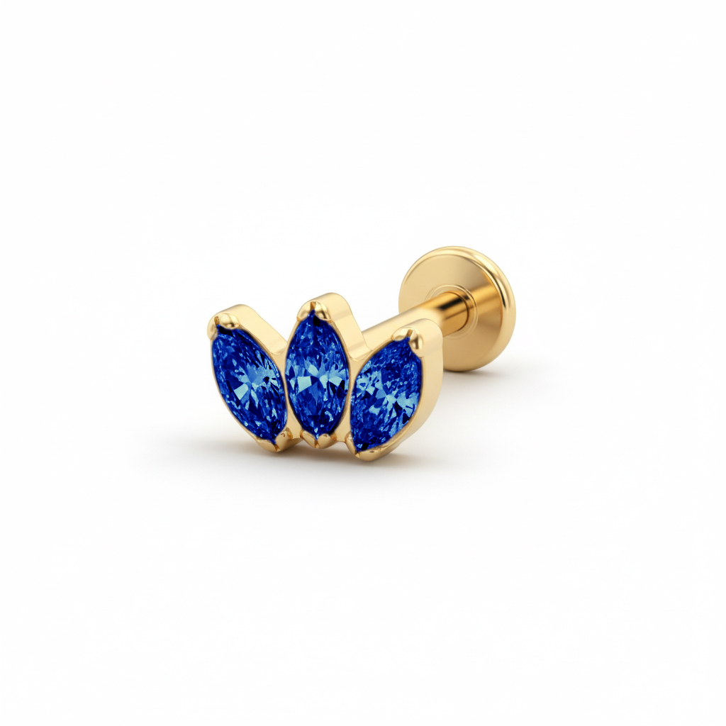 Titano labret su trimis pasirinktos spalvos akutėmis parodo, kad mažos detalės gali pakeisti visą jūsų įvaizdį. Trys laikikliuose išdėstytos akutės sudaro karūnėlę, kuri jūsų ausies papuošalams suteikia struktūros.