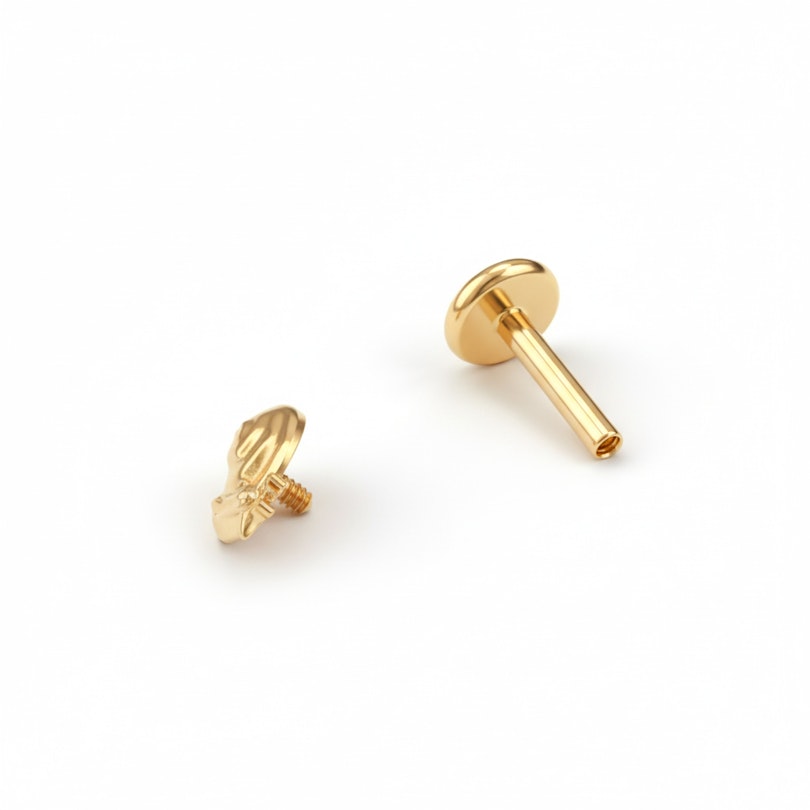 Pagamintas iš titano, tad hipoalerginis, atsparus vandeniui ir pakankamai tvirtas nešioti kasdien. Dėl vidinio sriegio lengva įverti ir saugiai priglunda, tad neišlysta. Tinka conch, helix, kaušeliui arba tragus, o plokščia nugarėlė suteikia patogumo visą dieną.