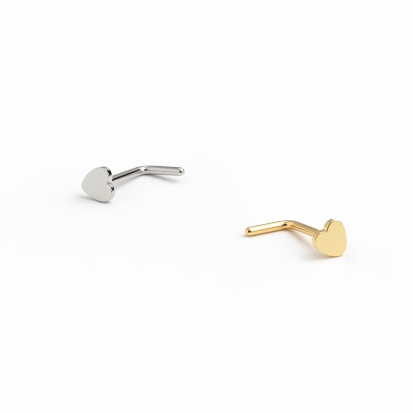 Sukurta kaip auskaras į šnervę, ši širdies formos smeigė yra nedidelė, bet ne nepastebima. Galima įsigyti aukso ir sidabro spalvų.