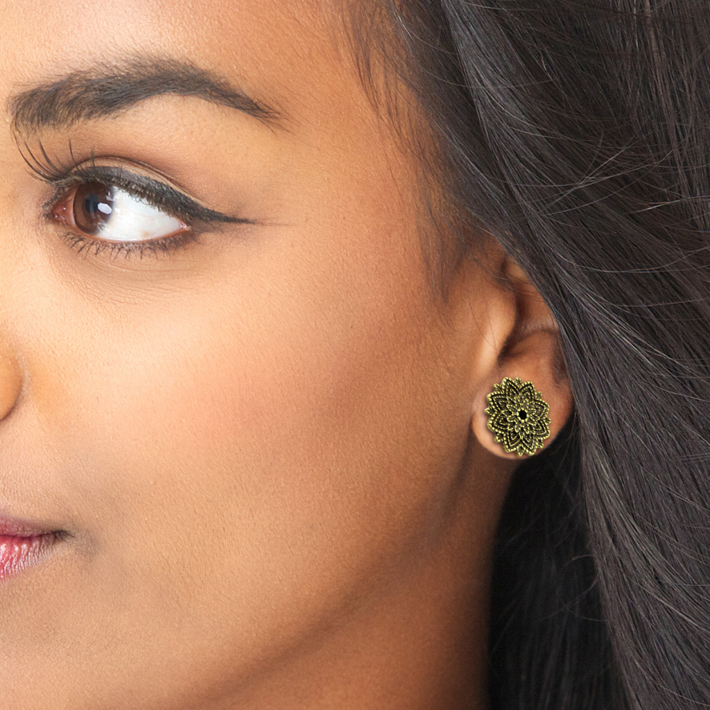 A lotus flower inspires the design of the tunnel, with many petals in gold color. The golden leaves, along with the black shades in them, create a beautiful and detailed effect. The center of the flower has a hole through the back.