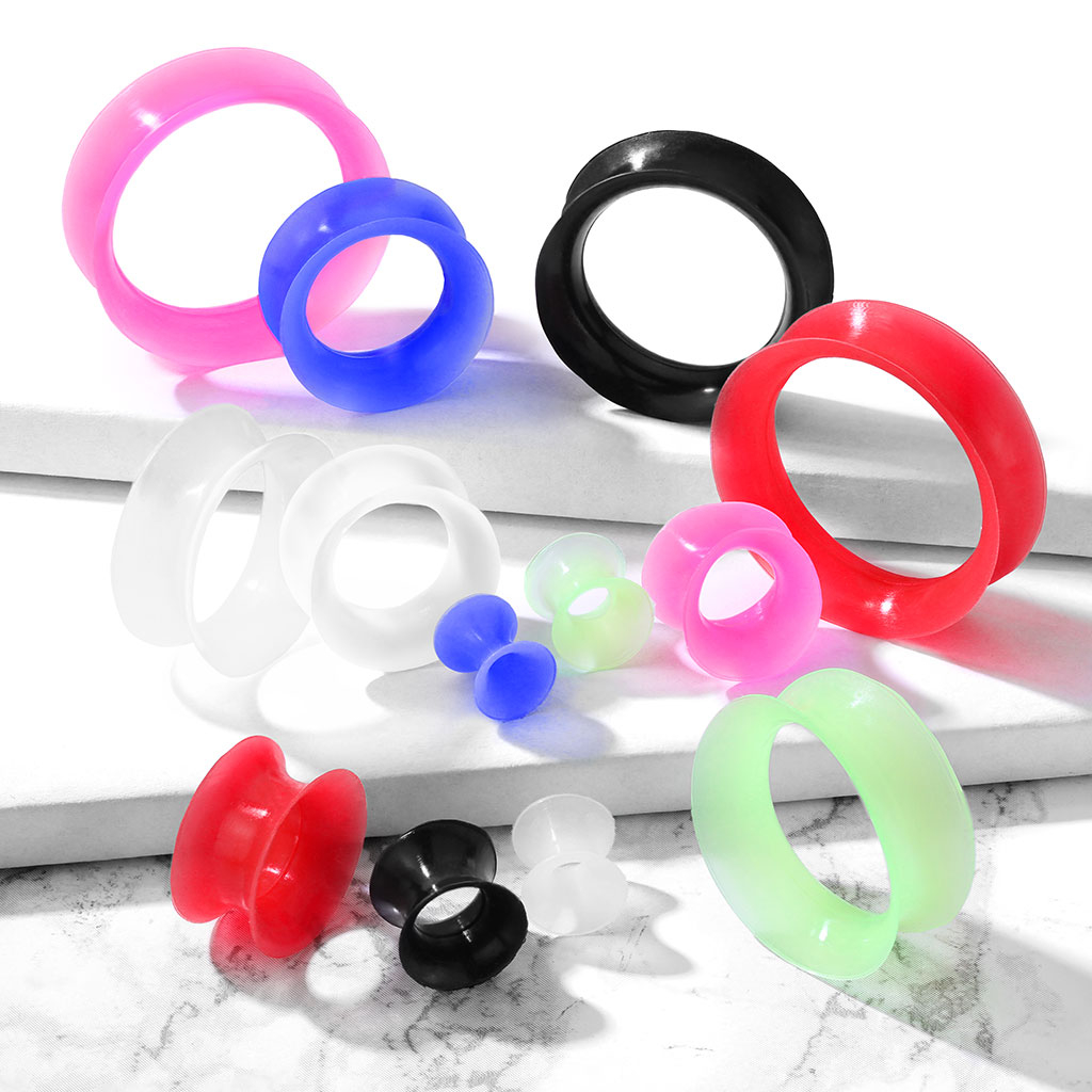 Choose your tunnel from 11 different gauge sizes and 10 different colors from the options above.