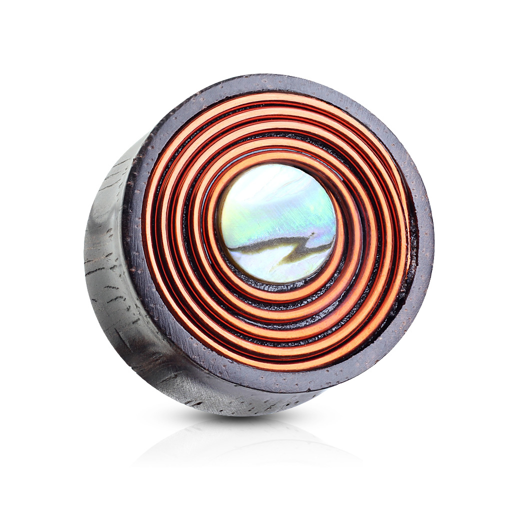 The front side features a small mother-of-pearl disc in the center, surrounded by a copper wire. It sounds weird if you read this description before seeing it, but it actually looks great on the plug.