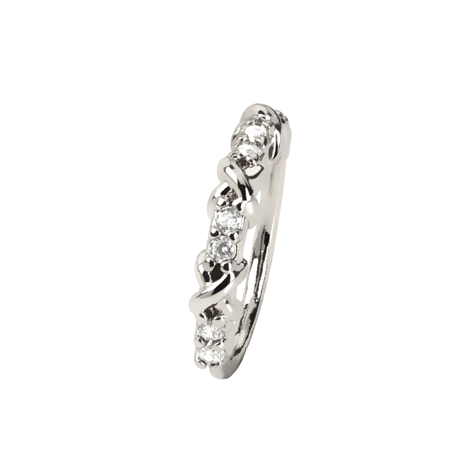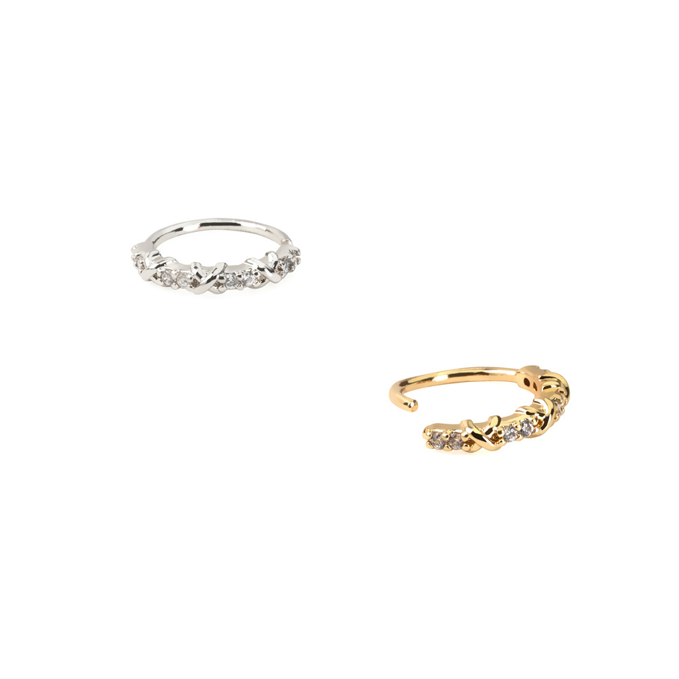 The thread thickness is 0.8 mm and the diameter is 8 mm, making it the perfect jewelry for a nostril piercing, and wearable as an interchangeable jewelry for most ear piercings. It's available in silver, gold and red gold color. The silver-colored ring is plated with platinum and the gold and red gold piercings are plated with 14kt gold.