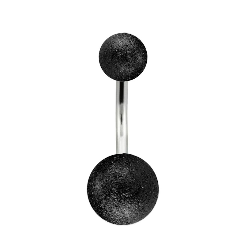 This unique belly button ring will shine bright when the beautiful balls are exposed to light. The balls' surface is made of stainless steel, and it's sandy to the touch, as they've been treated with a unique cover to get this look after treating the balls chemically to have little particles adhered and shining.
