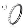 Pavadinimas: Hinged ring made of surgical steel with outward facing stones.