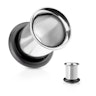 This tunnel has a quite simple design, for those who're looking for a simple yet elegant look. It's made in surgical steel and comes with an O-ring. It's an extra thin tunnel, easy to use, even in large gauge sizes. It's also easy to put in, with a flat back that enables easy insertion into the gauge. After placing it in your earlobe, sliding the O-ring into the back ensures that the tunnel doesn't slip out.