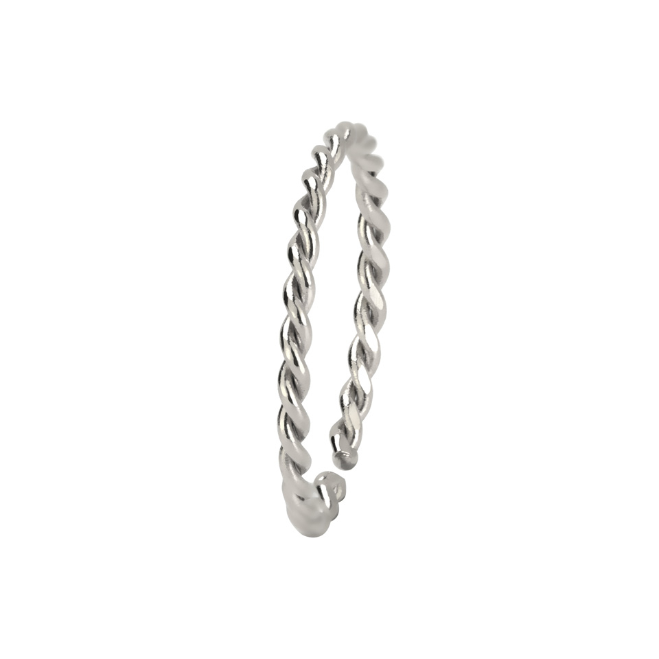 Šis žiedas - patobulinta populiariaus vientiso žiedinio auskaro variantas. Kuo skiriasi šis auskaras? Jis pagamintas net iš 2 metalinių vielelių, kurios yra supintos, tarsi kasa. Auskaro galai suvirinti, kad jį būtų lengviau įsisegti.