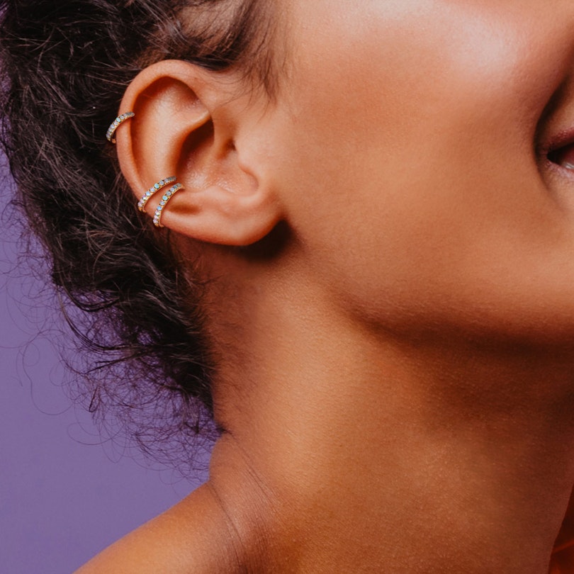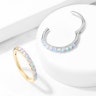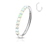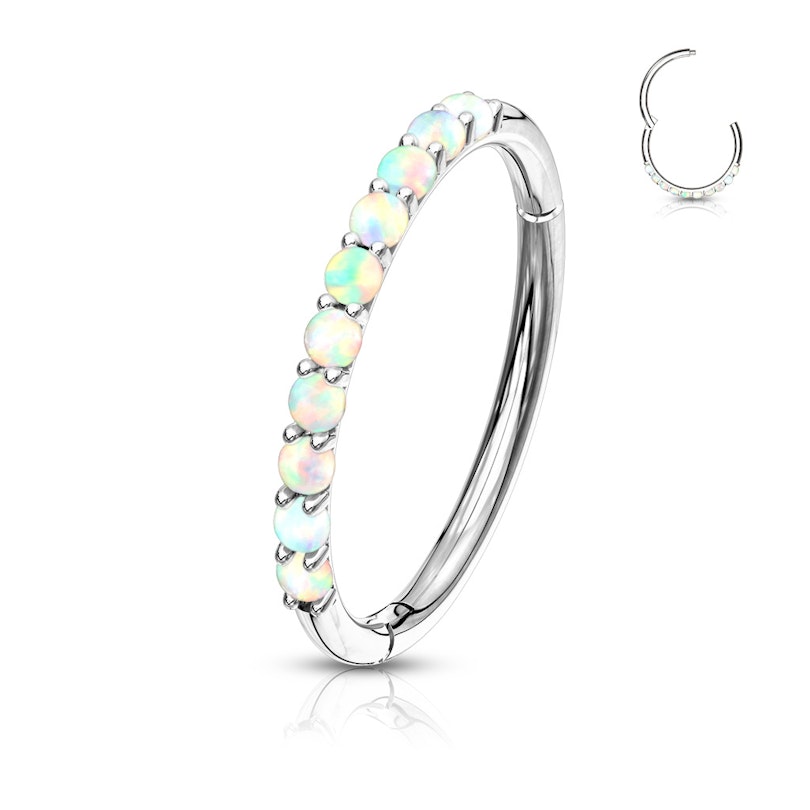 The ring is suitable for both ear piercings and nose piercings. It may not be the best for the septum, as the opals will face downwards. The opals are not genuine because they are too fragile for jewelry. These are resilient synthetic opals that are just as beautiful - so lifelike that only an expert could tell the difference.