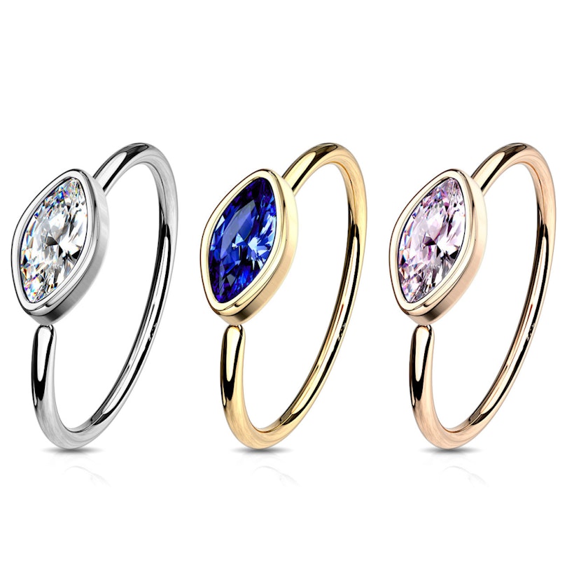 Atlenkiamas žiedinis auskaras į nosį su ovaliu akmenuku