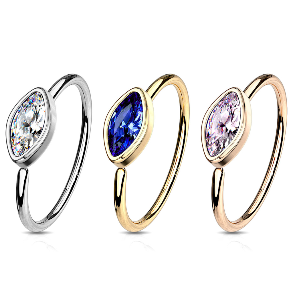 Atlenkiamas žiedinis auskaras į nosį su ovaliu akmenuku