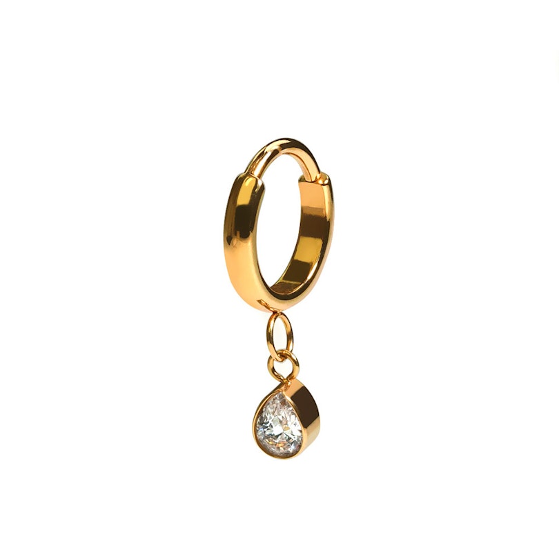 Žiedinis auskaras iš titano su ašaros formos pakabuku
