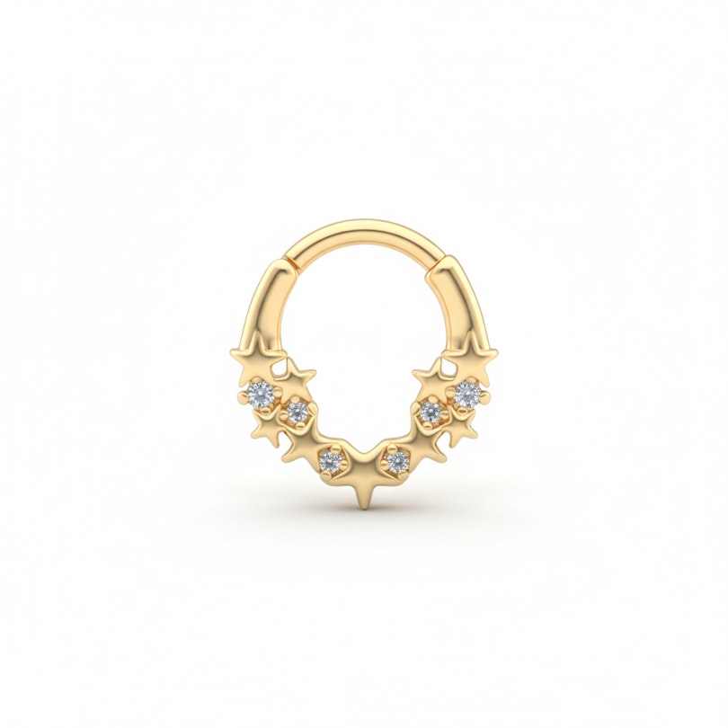Žiedinis auskaras su priekyje esančiomis žvaigždutėmis ir akmenukais