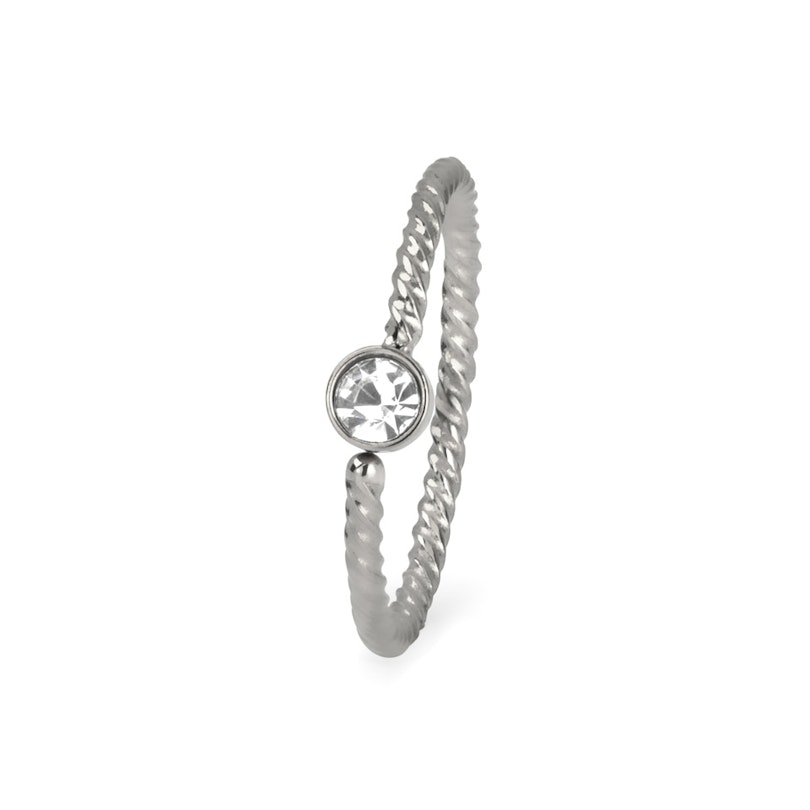 Žiedinis auskaras su susuktu lankeliu ir pritvirtintu kristalu