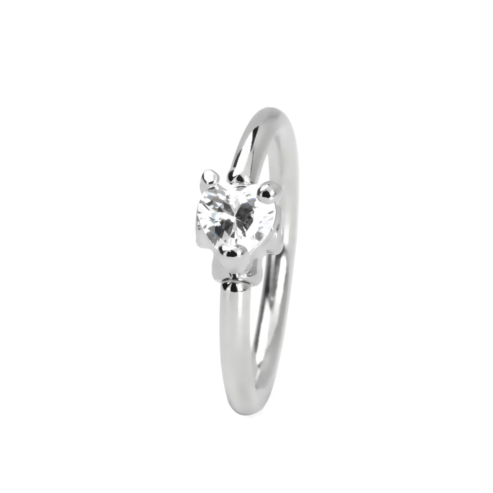 Šį karolinį žiedą puošia širdies formos kristalas, vietoj paprasto uždaromo kamuoliuko. Širdelė yra tvirtai užfiksuota dėka įtampos, kurią sukuria žiedo galai.