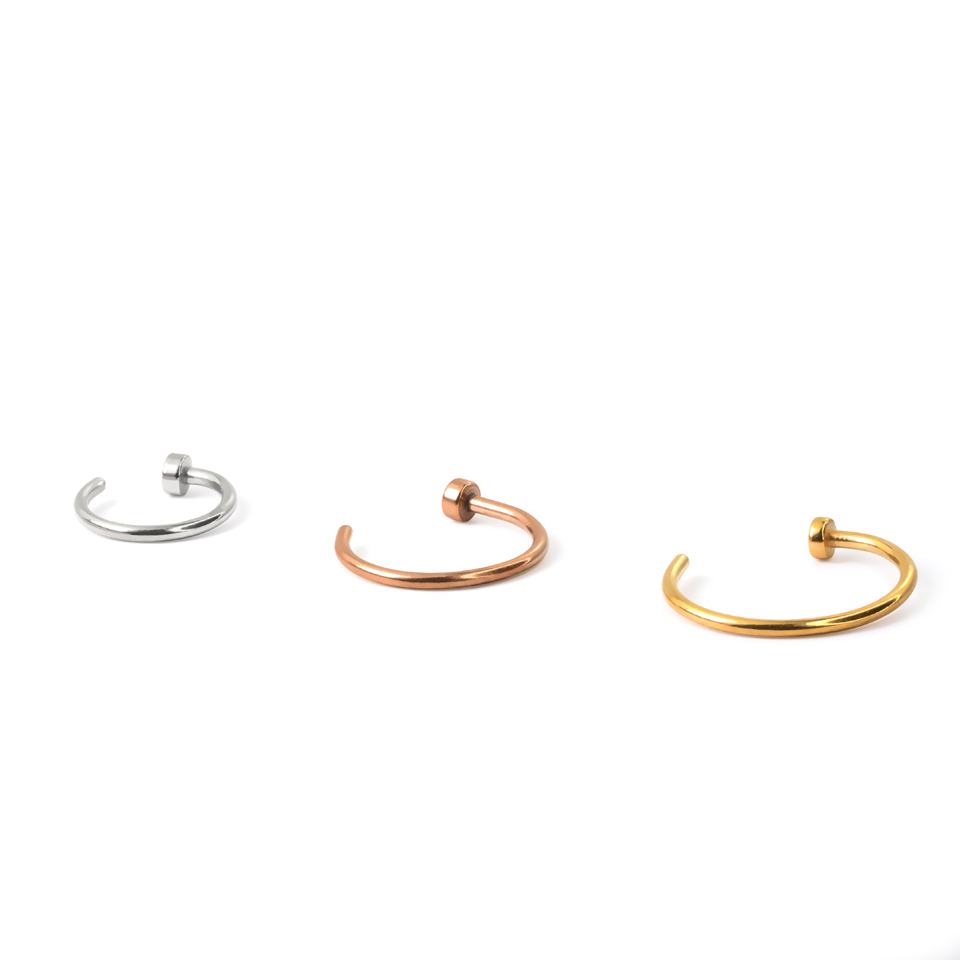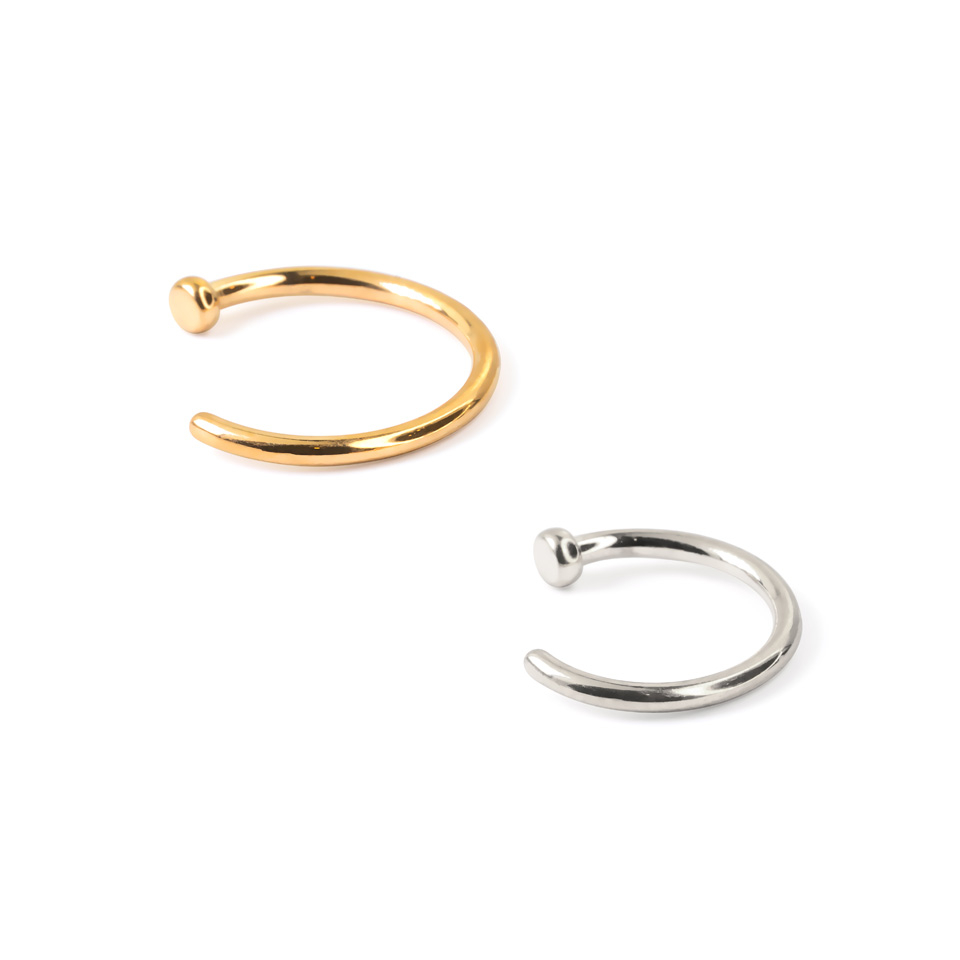 You can get this nose ring in different models. They all have the same ring shape, which consists of a single piece of C-shaped metal.