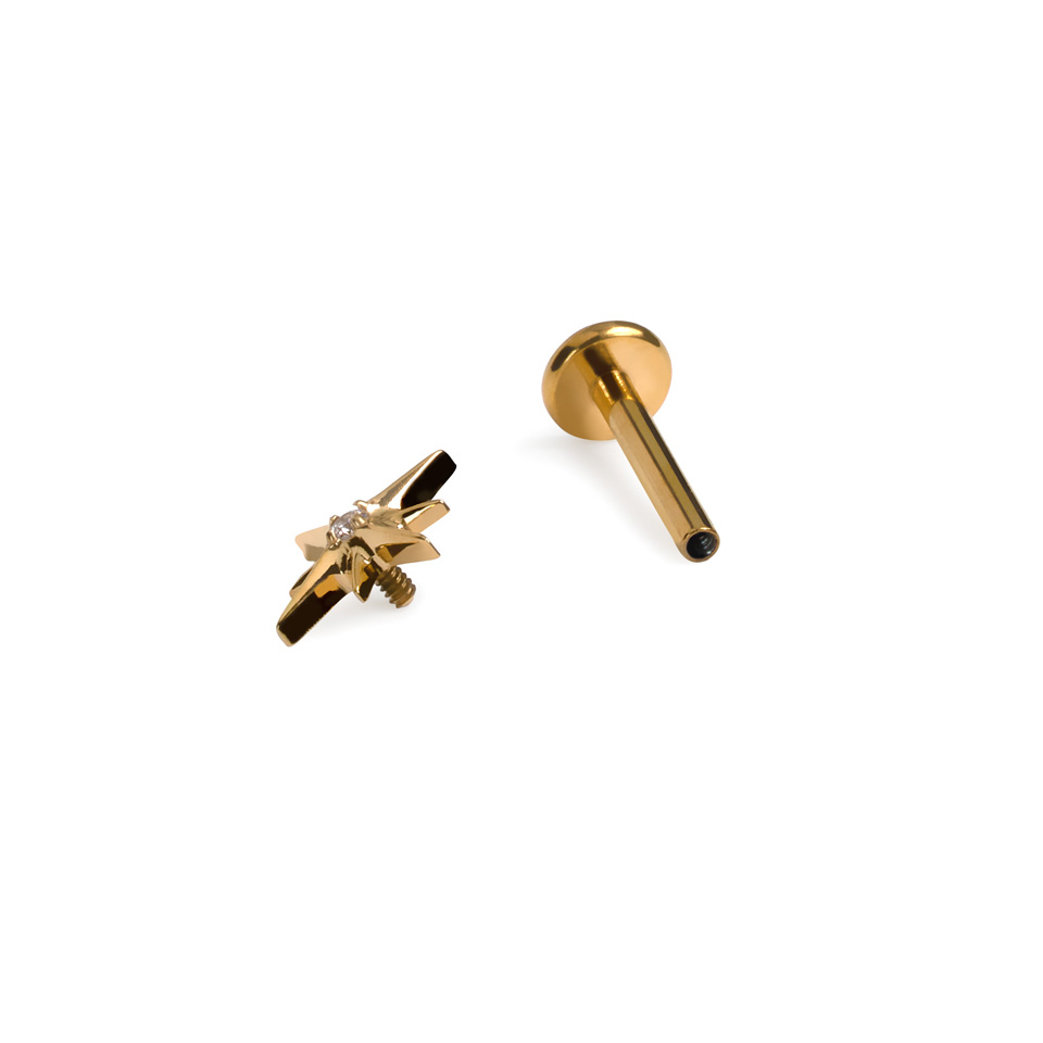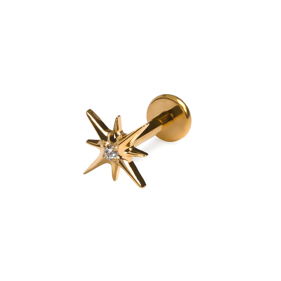 Žvaigždės formos titano labret su akute per vidurį sukurtas tiems, kam patinka šiek tiek kosminę dramą primenantys papuošalai. Žiedo formos dizainas įrėmina akutę per vidurį. Šią išskirtinę detalę bet kokiam ausies papuošalų deriniui galima įsigyti aukso ir sidabro spalvų.